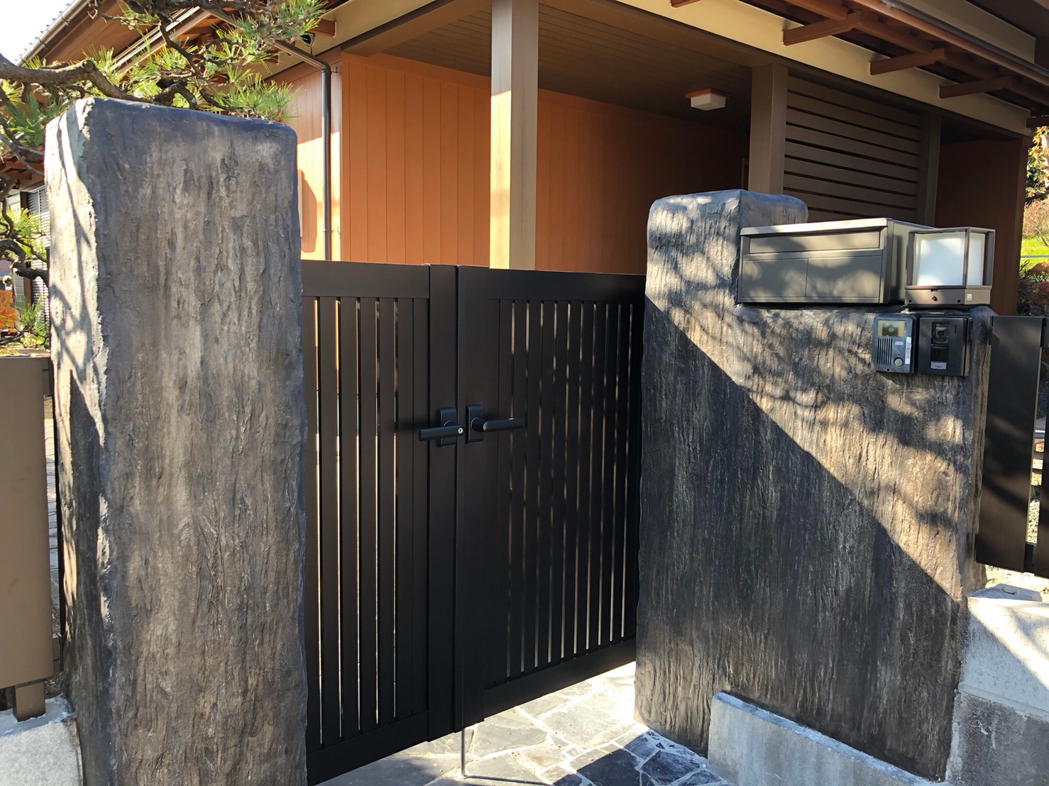 豊川市K様邸モルタル造形|重厚な木材をイメージして作った手入れ不要の腐らない門柱